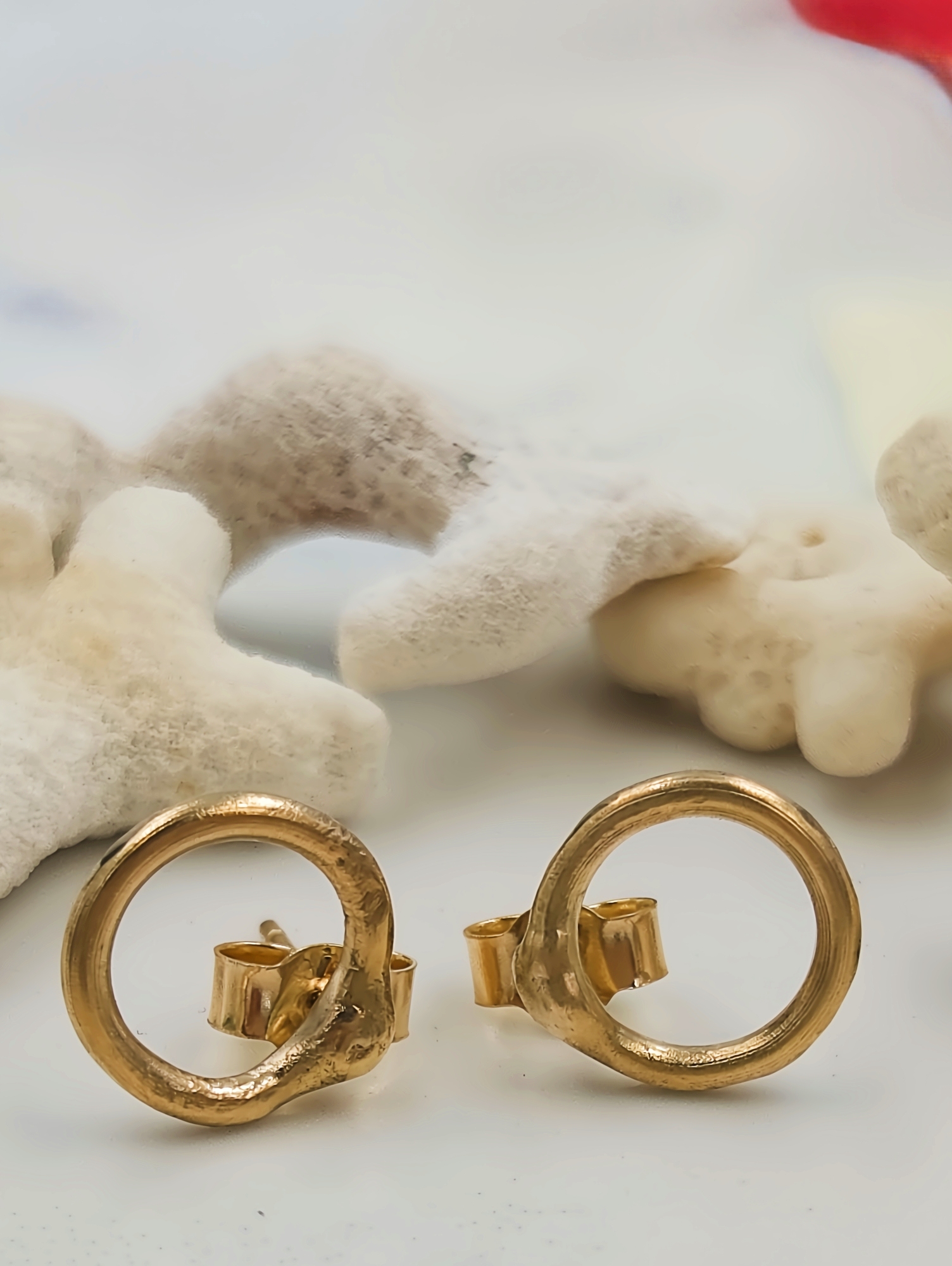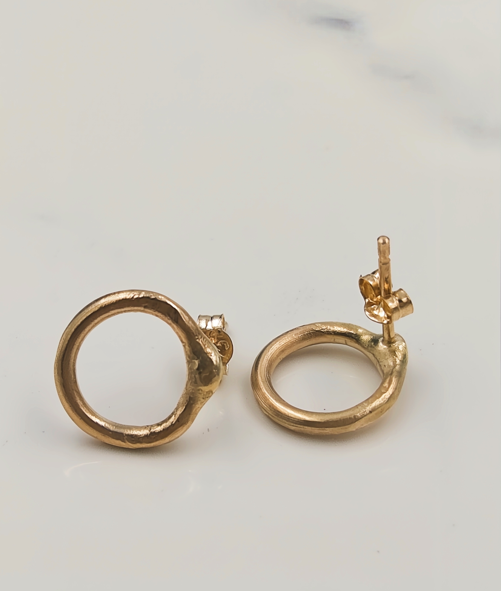 Featuring a minimal, slightly molten circular shape, these gold studs are subtle yet sophisticated. Their dainty size and modern design make them perfect for layering with other earrings or wearing alone for a clean, polished look. Each stud is finished with a 9ct yellow gold butterfly back ensuring long-lasting wear that won’t tarnish or fade over time.