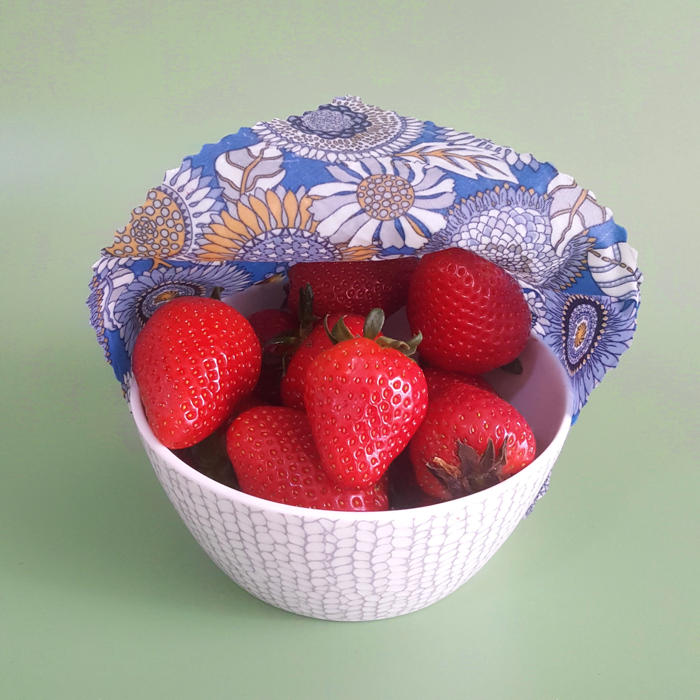 – Use instead of plastic to cover bowls, leftovers, sandwiches. It’s reusable! Lasts a year+ with regular use and care.