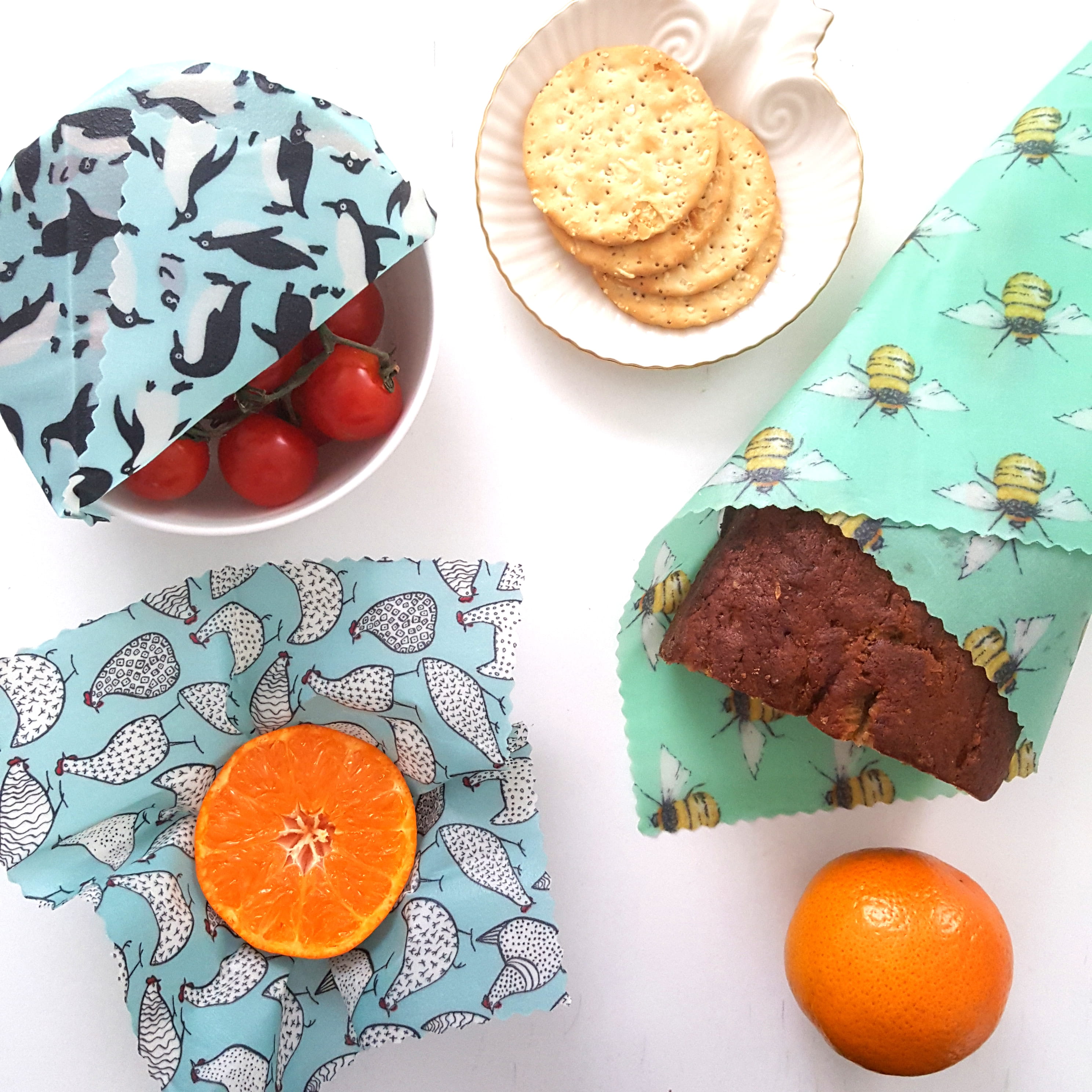 Use beeswax wraps to save leftovers, cover bowls, keep cheeses fresh, wrap sandwiches, half an onion, apple, etc, even keep your toothbrush travel-ready and seal the tops of suncream and moisturisers for spill-free packing! They also work in the freezer.