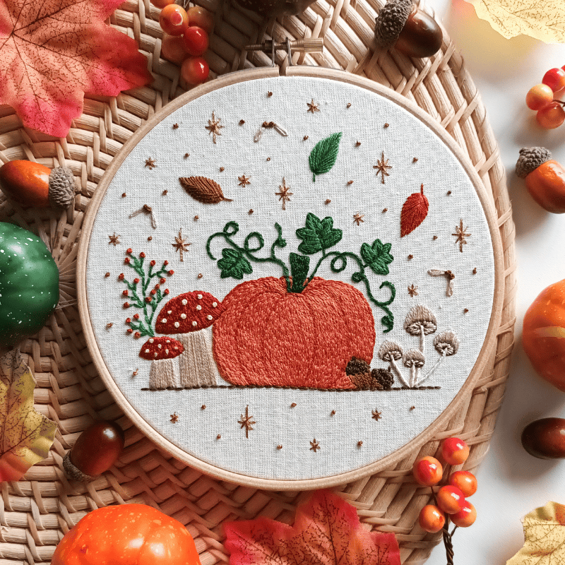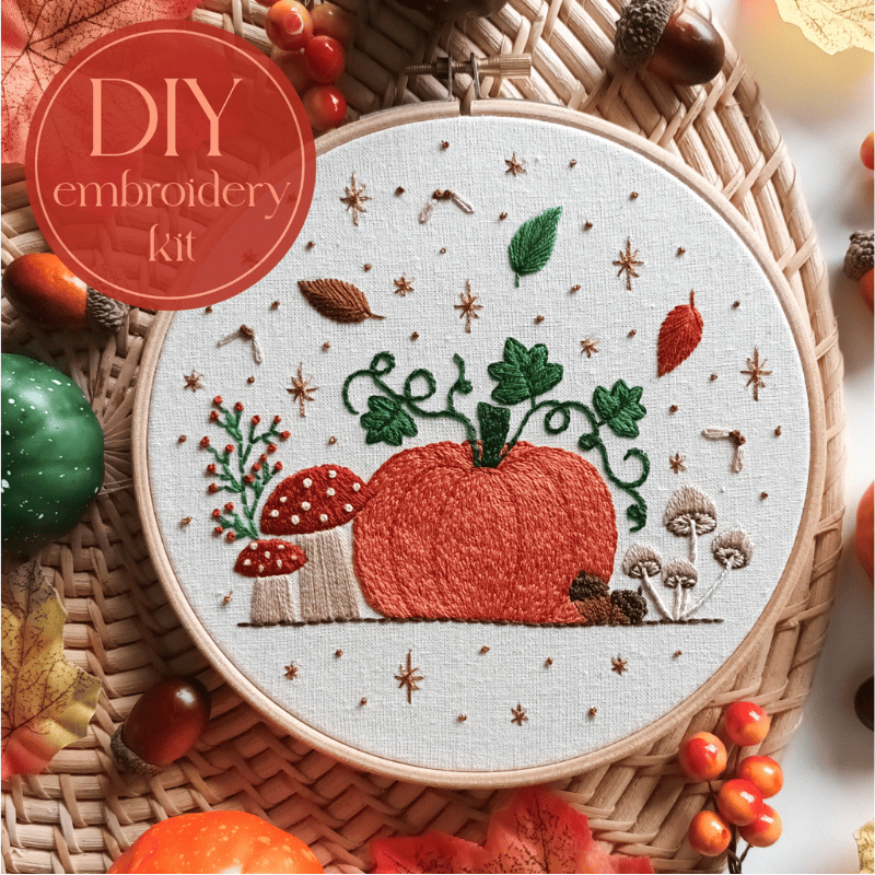 This listing is for a complete physical embroidery kit. This design is a lovely autumnal piece, filled with warm colours and natural elements for the perfect fall vibes embroidery project.