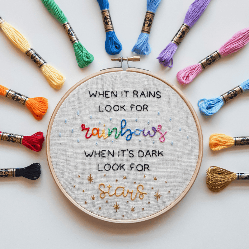 This listing is for a complete physical embroidery kit. A simple but effective embroidery design, filled with colours and motivation, for a quick but fulfilling craft project. You will experience mindfulness while stitching and then you will have a great physical reminder for your low days to stay positive.
