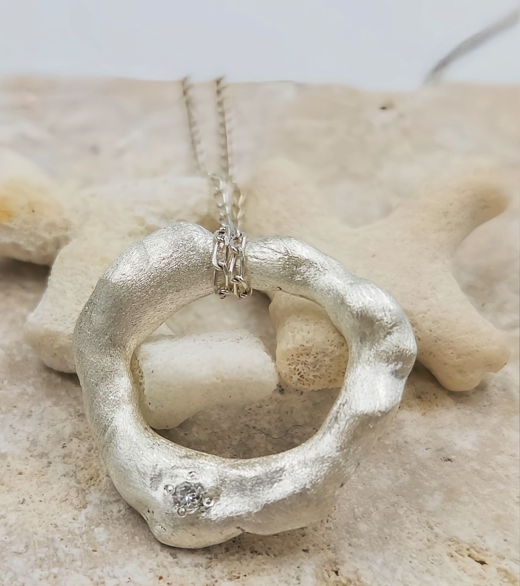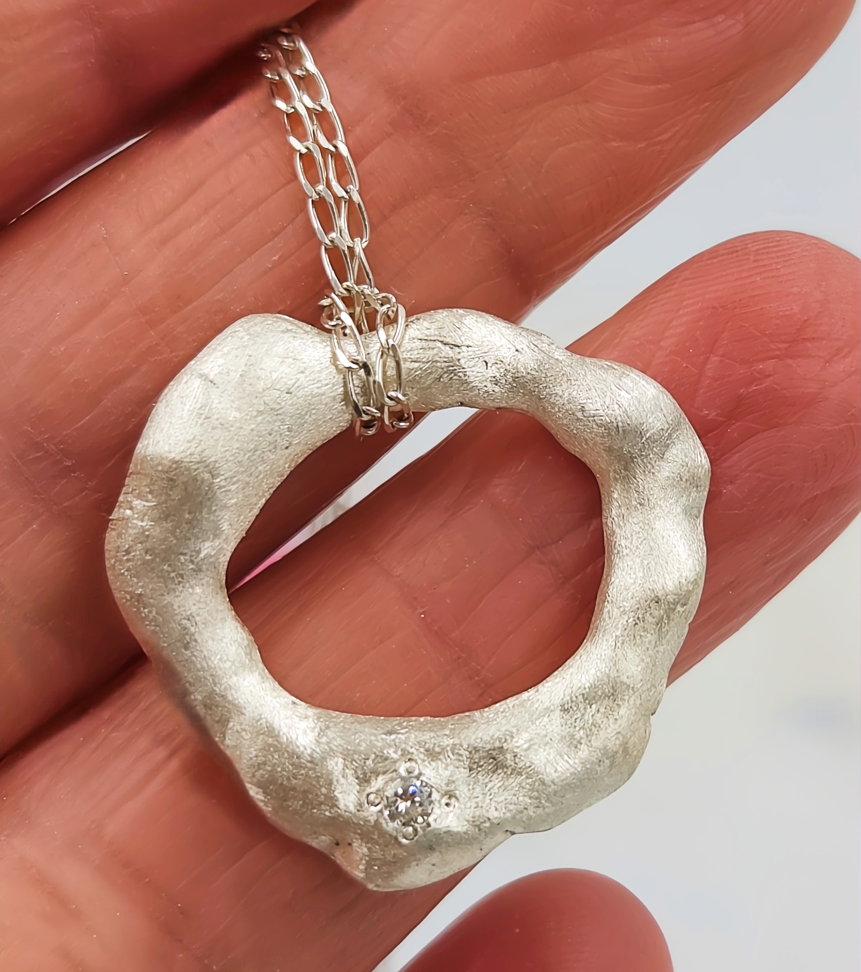 Discover the timeless elegance of this hand forged sterling silver pendant, uniquely crafted for those who appreciate artistry and sophistication. Adorned with a dazzling 2mm white CZ, this piece is a true statement of individuality.