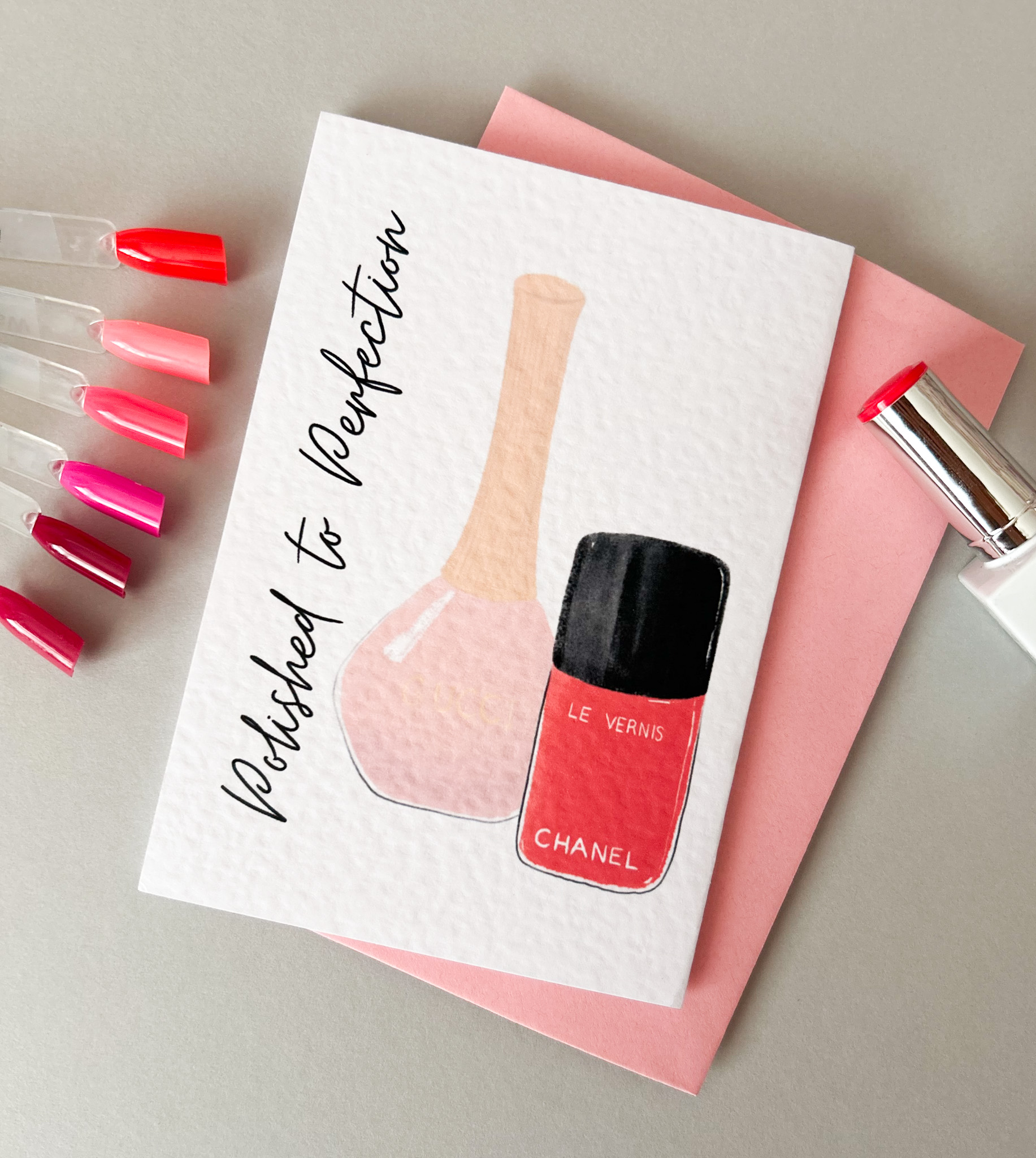 Celebrate beauty in all its polished glory with this one-of-a-kind greeting card, sure to make a statement!
