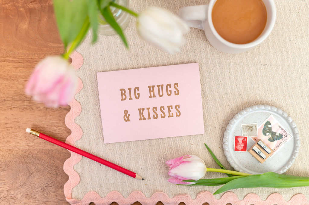 Letterpress Big Hugs and Kisses Valentine Galentine Card