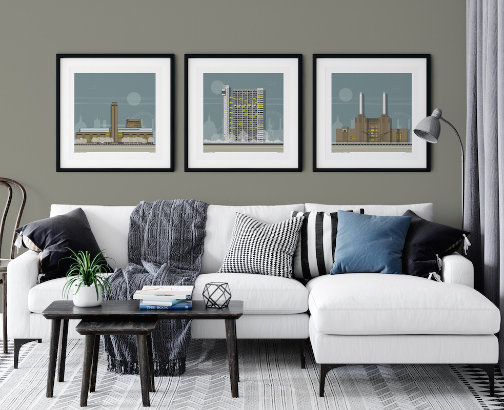 The London Battersea Power Station Print limited edition Signed Giclee Print come in a choice of 4 different backgrounds colours.