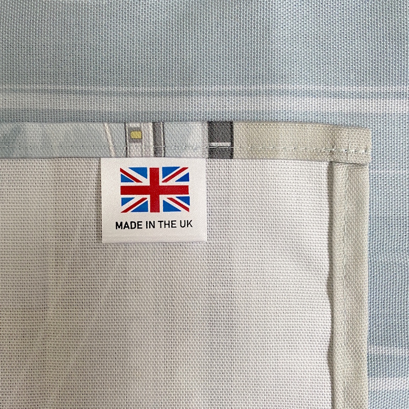 The tea towel is individually folded and presented in a belly band and shipped in a sturdy envelope via Second Class Royal Mail.