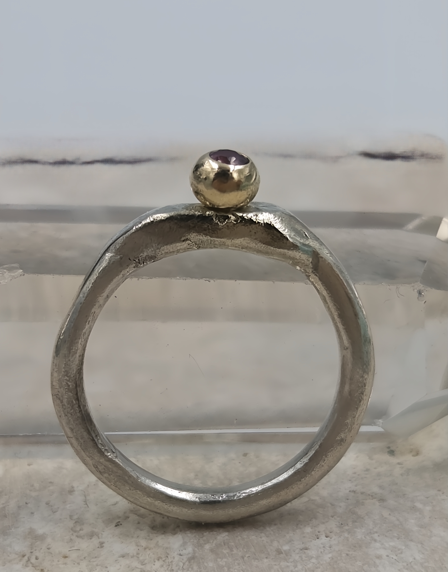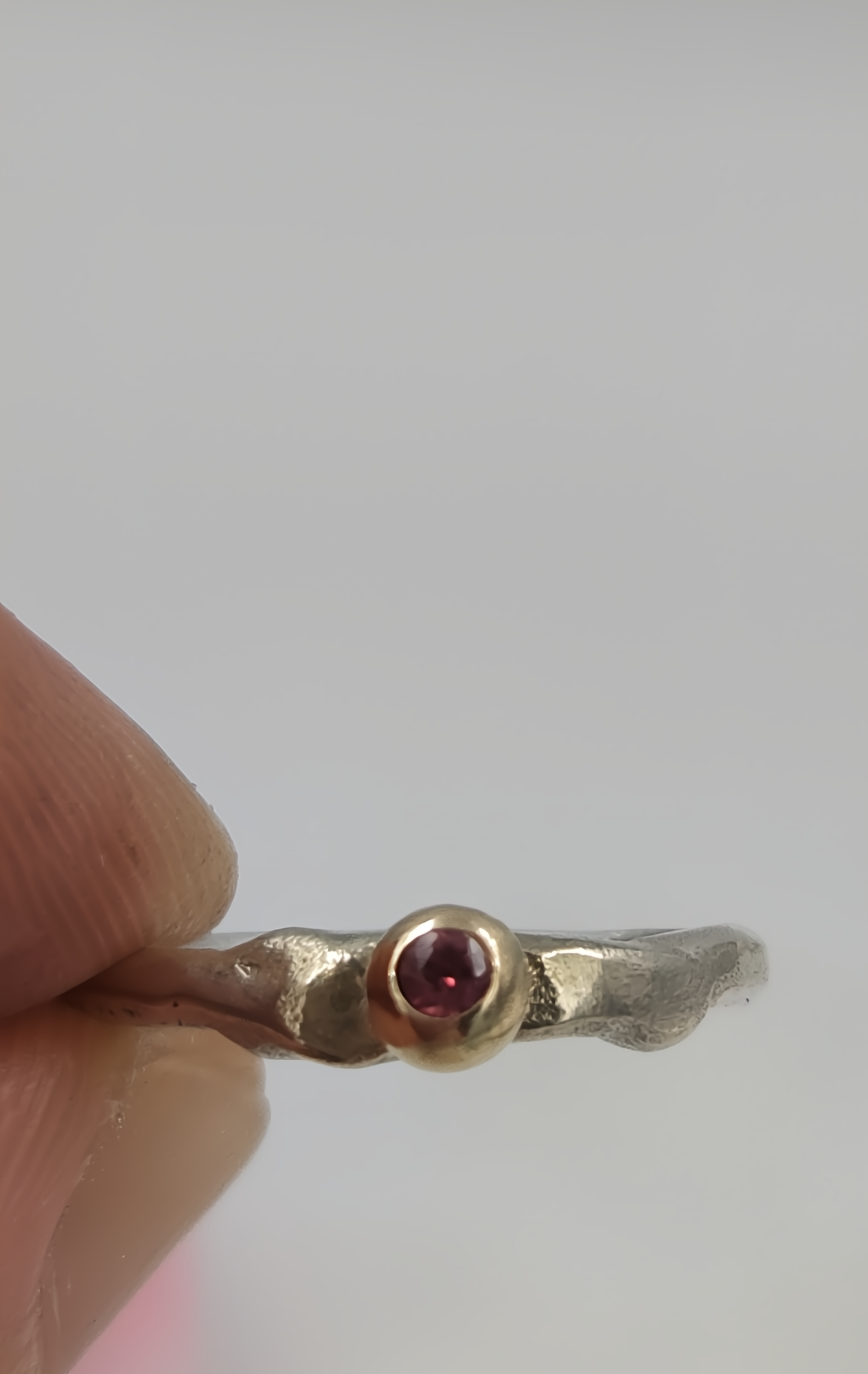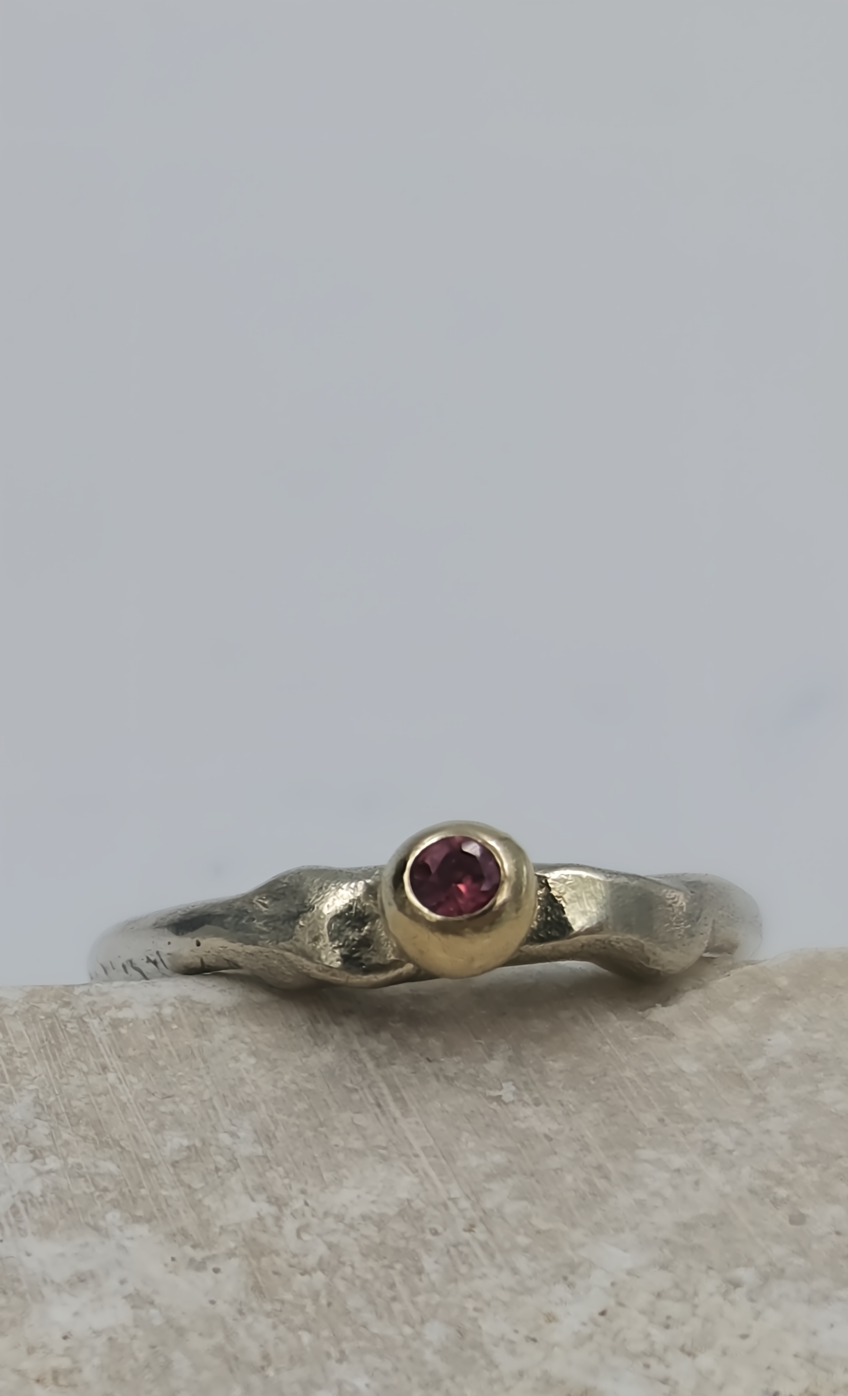 Molten Silver Pinky Ring with Gold Granule and Garnet