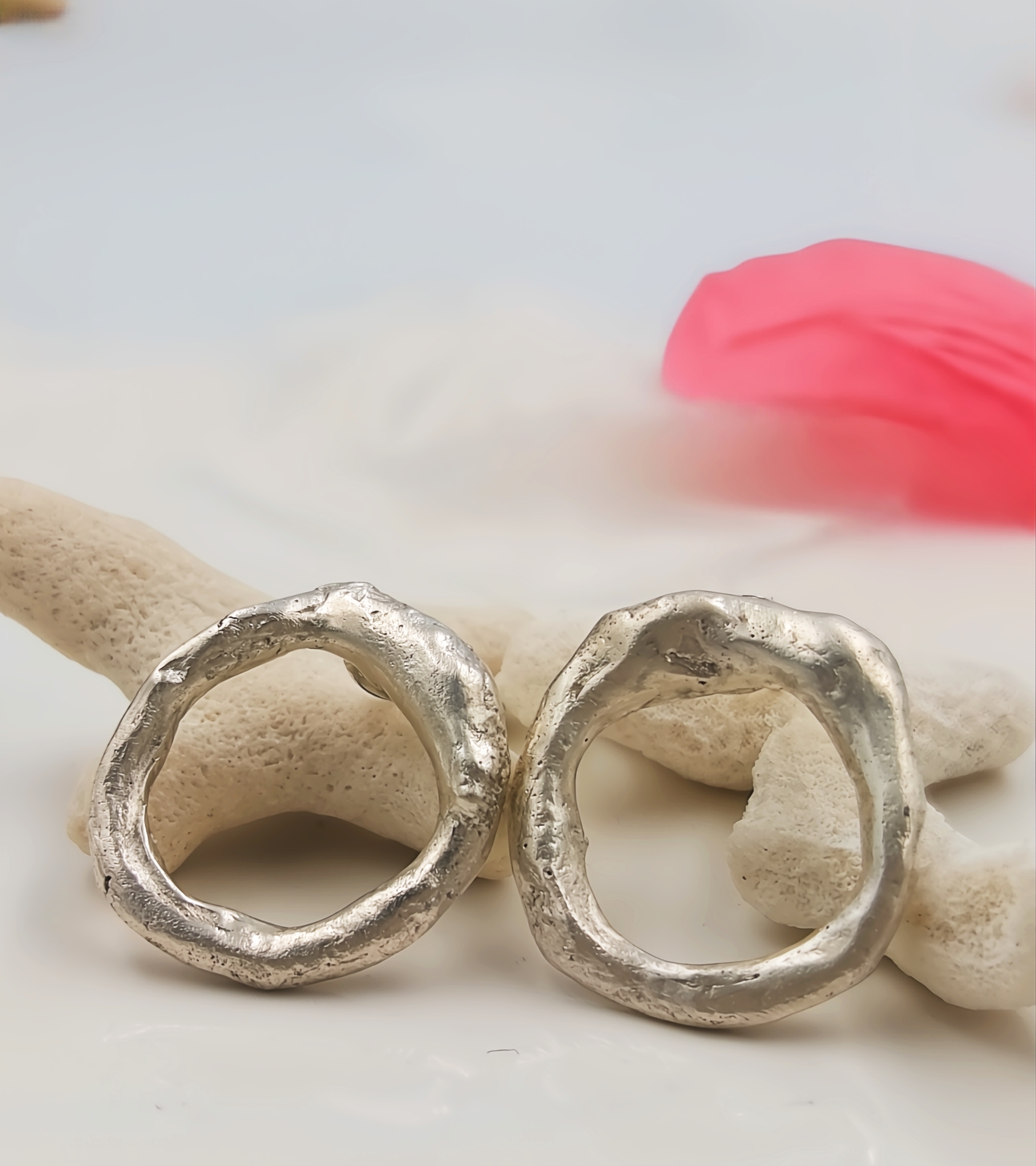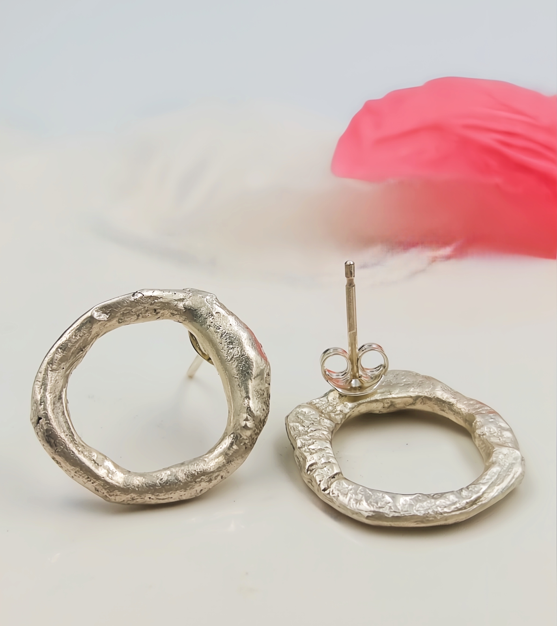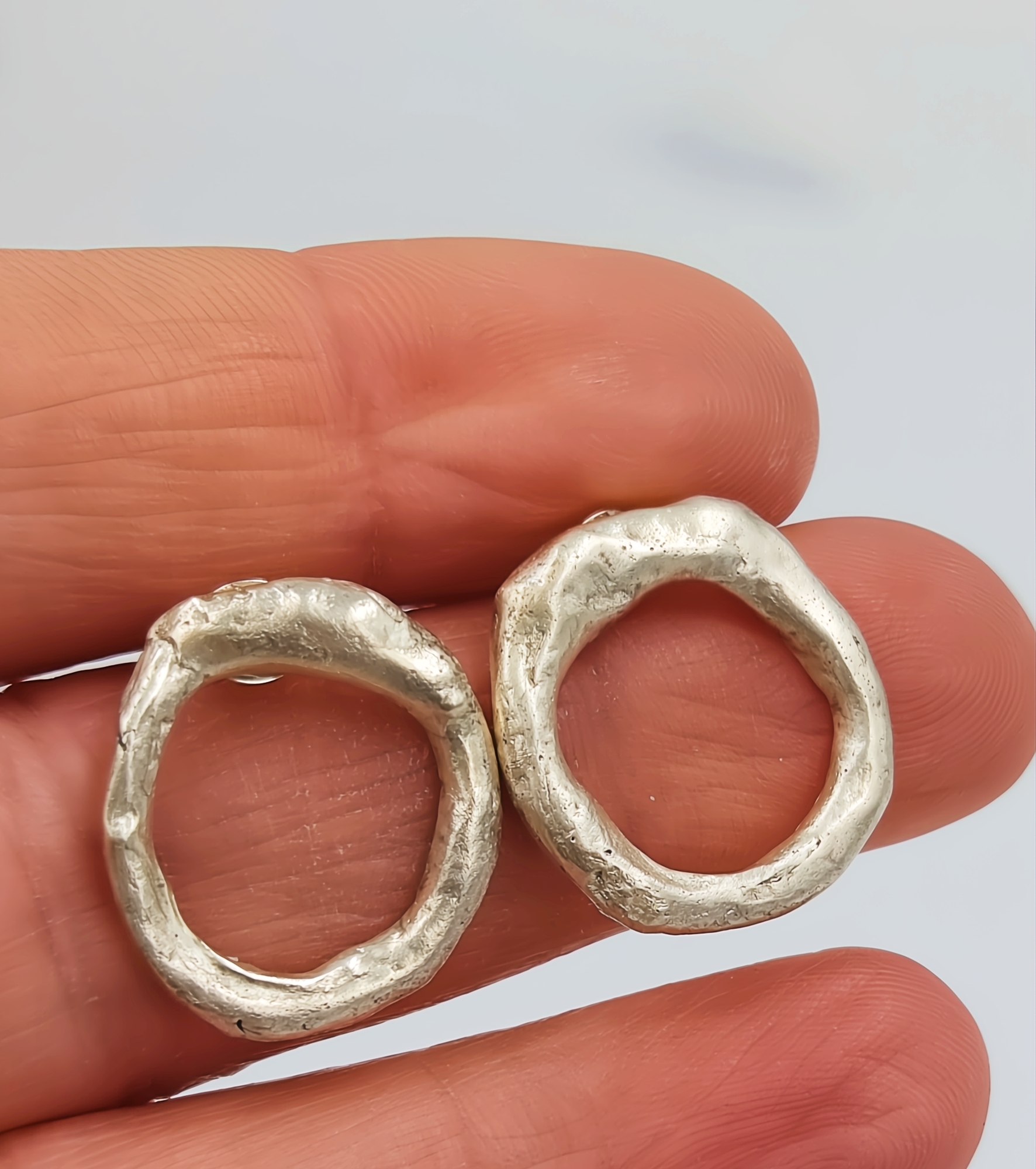 These molten silver circle studs are designed for those who love simple jewellery that still feels noticeable. Hand-formed from melted sterling silver, each pair has a naturally organic shape with soft curves and a subtly chunky feel that adds depth without being heavy.