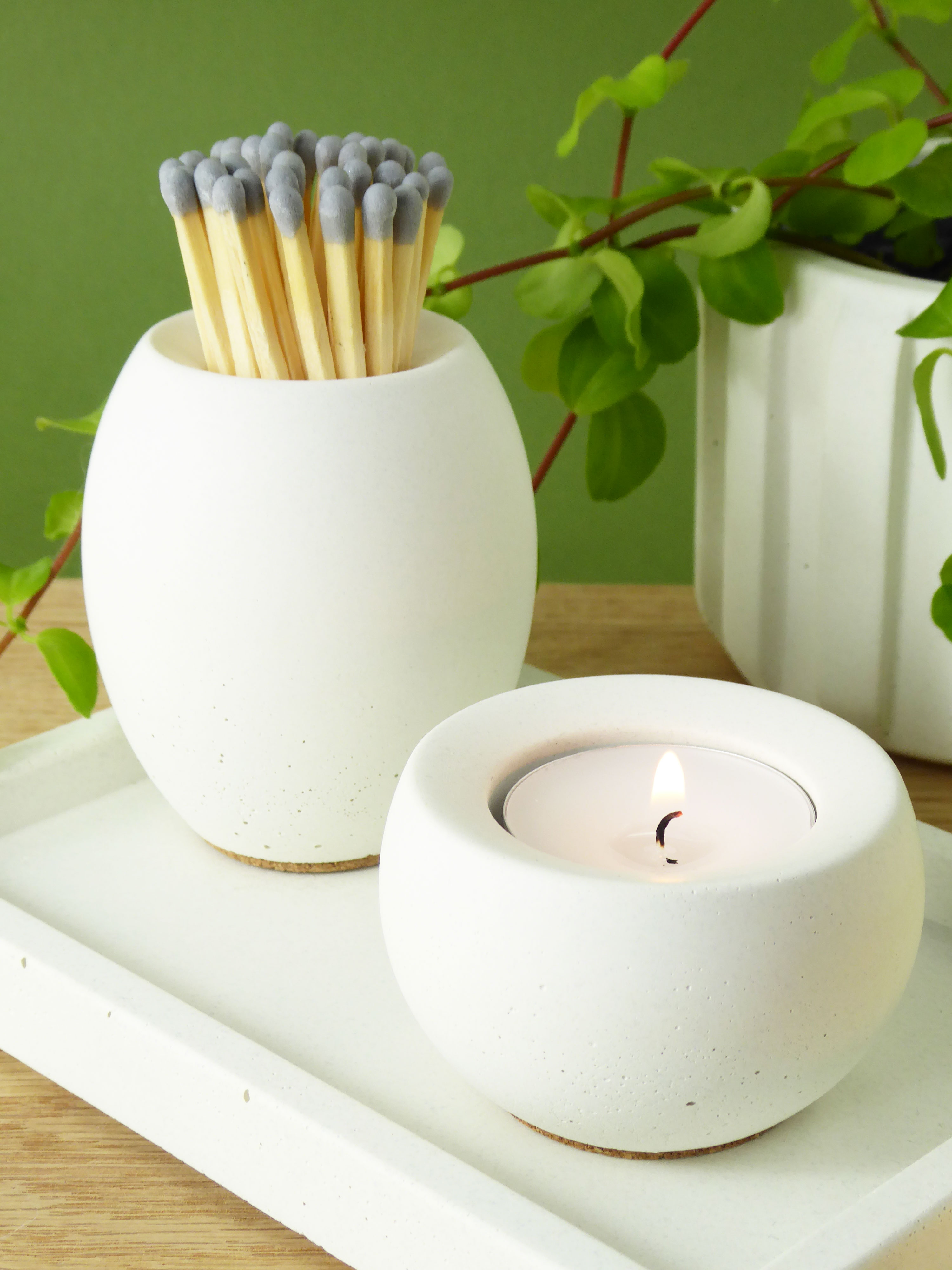 With its soft neutral tones, this match pot complements any interior style and makes a thoughtful gift for candle lovers, housewarmings, or anyone who appreciates simple, handcrafted design. It pairs beautifully with our concrete tealight holders for a calm, cohesive look.