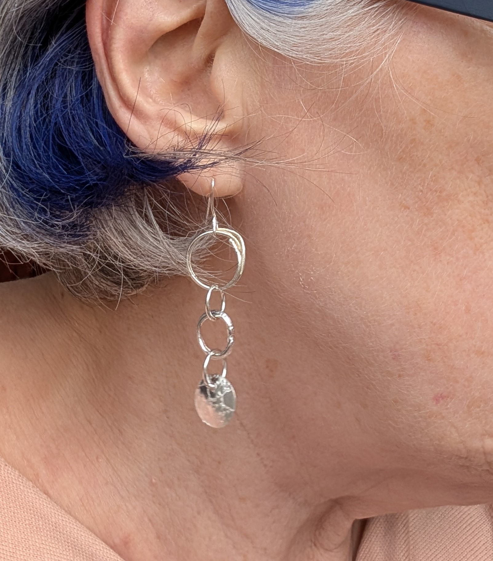To ensure your earrings stay looking as brilliant as the day you receive them, store them in a dark place when they’re not being worn. Silver naturally oxidises when exposed to light, which can cause it to darken over time. Keep them wrapped individually so they don’t rub against other jewellery pieces and risk scratches. With the right care, your handmade recycled-silver earrings will remain a cherished part of your jewellery collection for years to come.