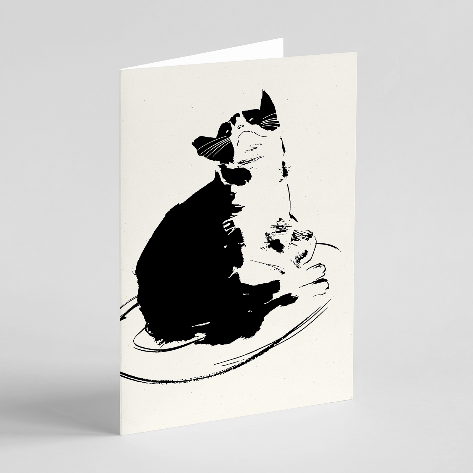 The ‘Tuxedo Cat’ greetings card, is taken from my original ink illustration. This unique card features a big, tubby Tuxedo cat relaxing on a mat, captured mid-thinking about vigorous scratch behind the ear – a moment of feline character and gentle humour. Perfect for cat lovers, animal enthusiasts. Blank on the inside, this Tuxedo Cat card is versatile enough for birthdays, thank yous, well wishes, congratulations, anniversaries, or everyday notes.