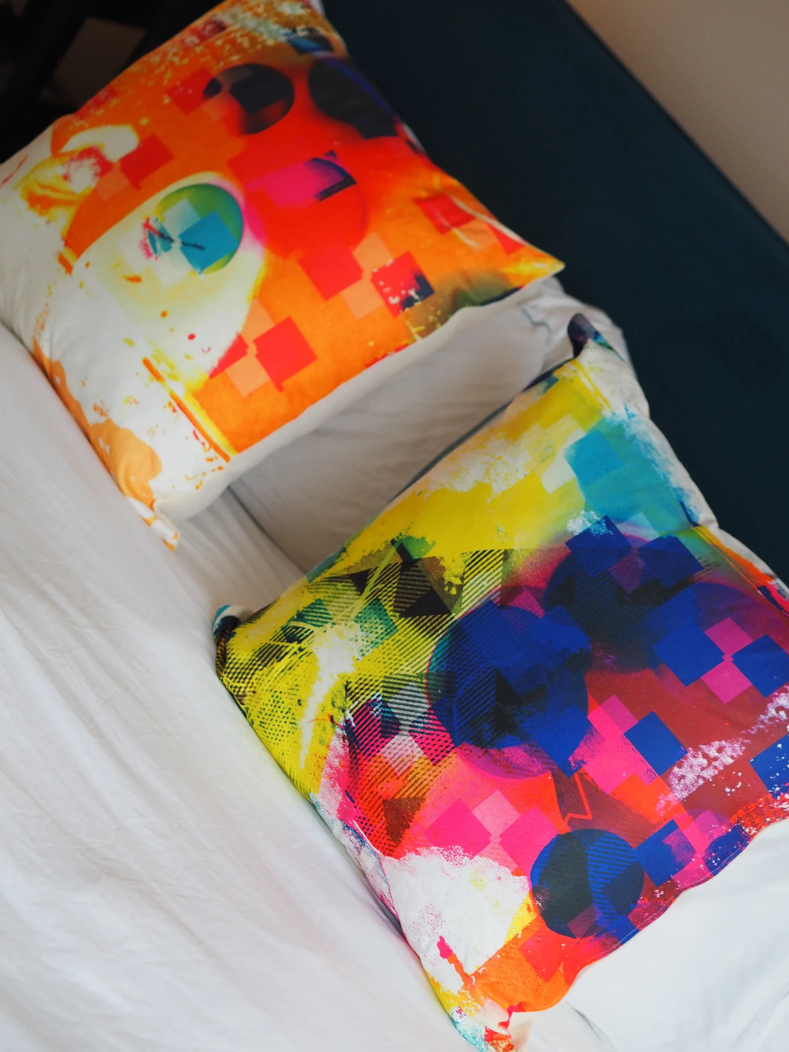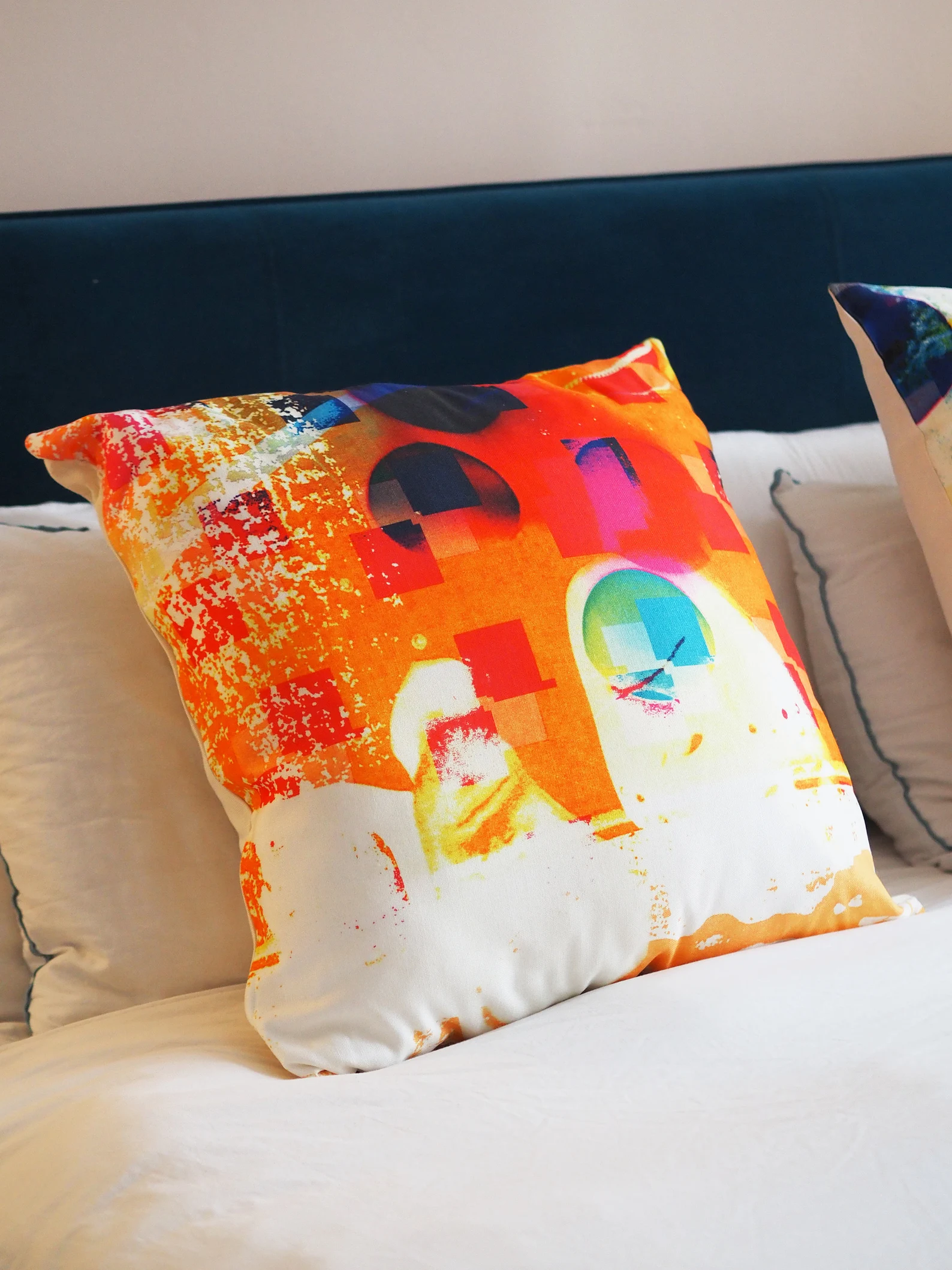 Featuring a modern yellow or orange abstract design, this giant square statement cushion is perfect for bringing colour and personality to sofas, beds, or reading corners.