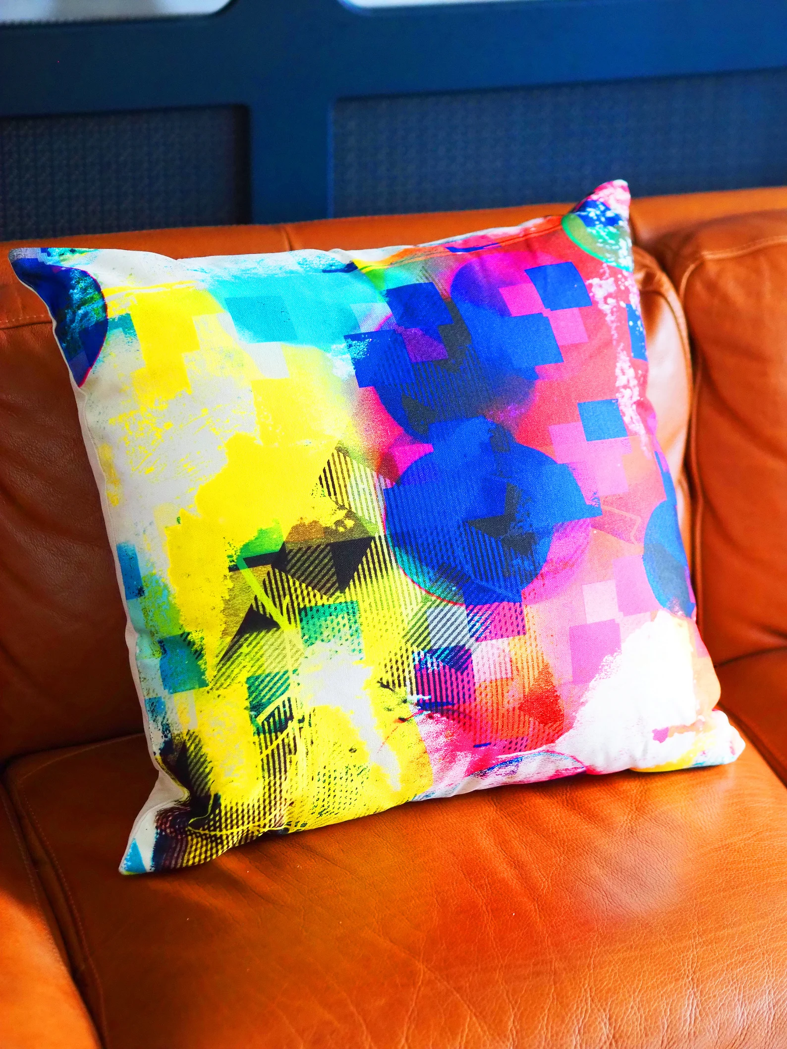 Designed to stand out, this modern decorative cushion cover is digitally printed on high-quality performance linen fabric and finished with a discreet hidden zip along the bottom for a clean, modern look.