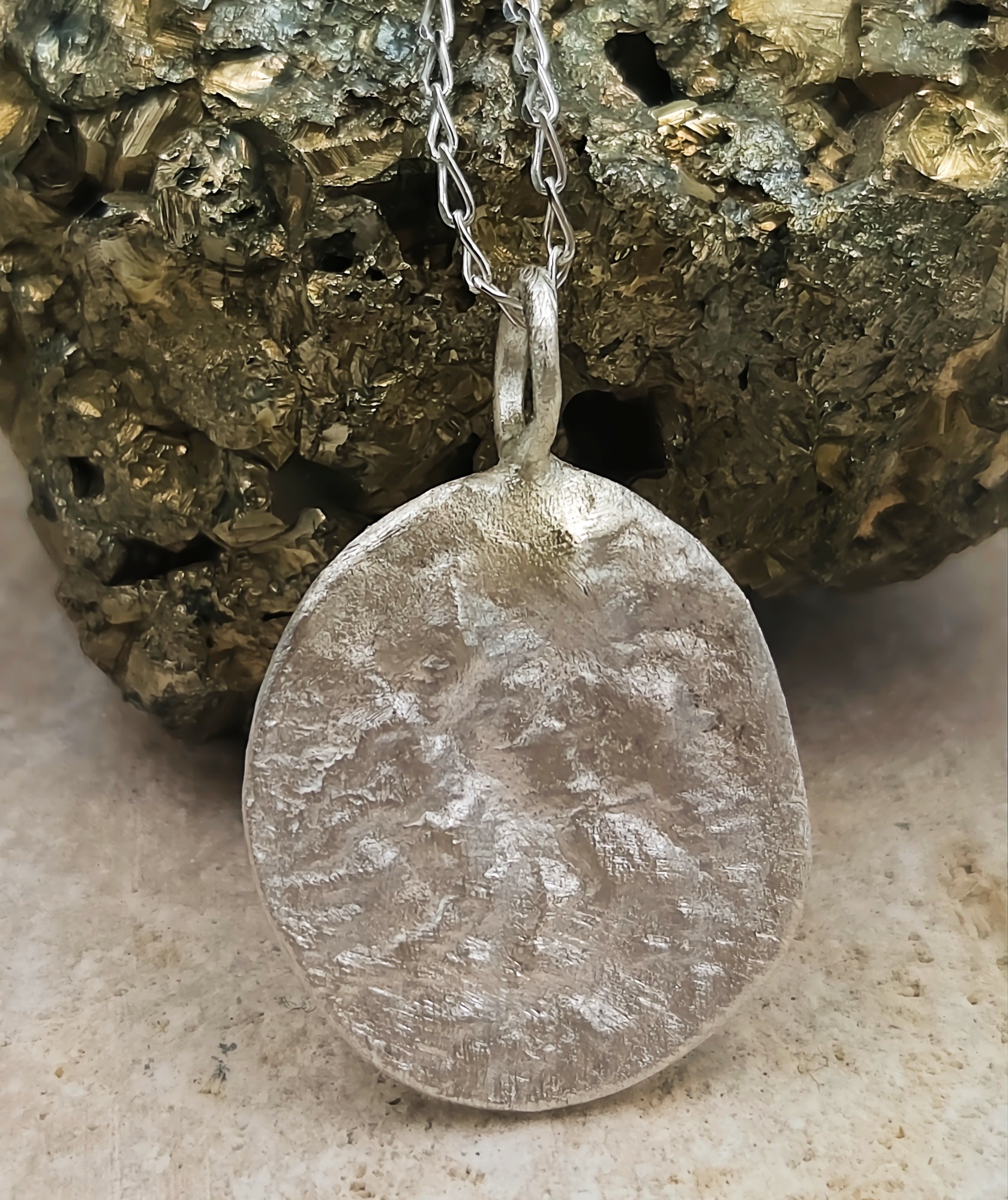 Discover the elegance of individuality with this hand forged and textured sterling silver pendant. This one-of-a-kind piece radiates modern charm.